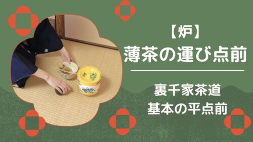 裏千家茶道の炉の平点前。棚なしの運び点前のお稽古です。準備するお道具、水屋仕事、お点前の流れを写真付きで詳しく載せています。続きを読む