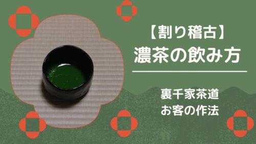 裏千家茶道の濃茶の飲み方・いただき方についてのお稽古です。数人での回し飲みが基本なので、タイミングも大切!1つずつ見ていきましょう。続きを読む>>>