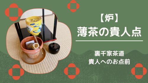 炉の貴人点薄茶点前のお稽古です。ポイントは3つ(貴人台の扱い・お茶を出す位置・拝見物の扱い)詳しく見ていきましょう。>>>続きを読む