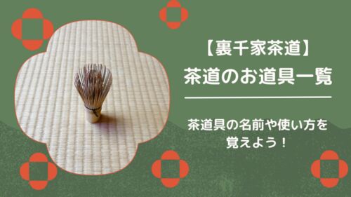 裏千家茶道で使われるお道具の一覧。名前や使い方などまとめました。>>>続きを読む
