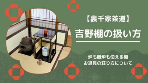 吉野棚の扱い方や、お道具の荘り方について。炉も風炉も使えますが、風情が変わるのが特徴です。>>>続きを読む